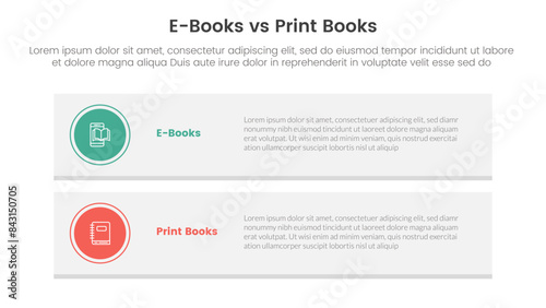 ebook vs physical book comparison concept for infographic template banner with long rectangle box vertical with two point list information