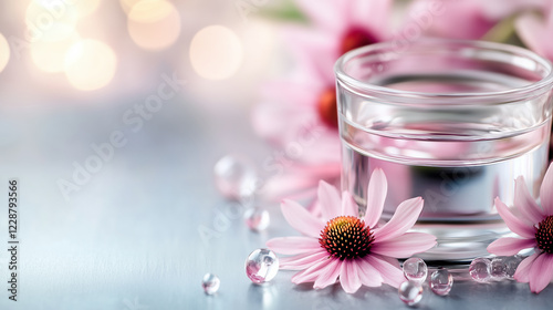 Echinacea Extracts Surrounded by a Soft, Clean Background with Clear Space for Text, Generative AI