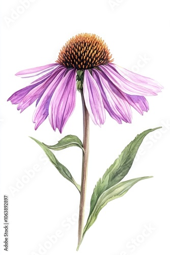 Echinacea Herbal Tea. Hand-drawn Watercolor Illustration of Purple Coneflower Plant for Natural Medicine and Health Benefits