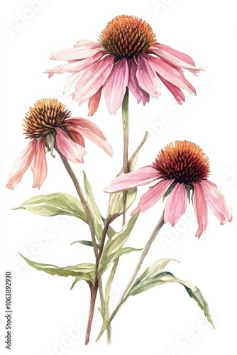 Echinacea Purpurea Wellness: Watercolor Floral Illustration of Herbal Plant for Alternative Medicine