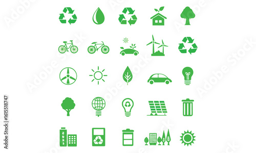 Eco & Green Energy Icons Recycle, Solar, Sustainable Set