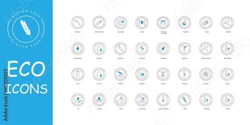 Eco Sustainability and Nature Icon Set, Environment, Green Living, Climate Action, Natural.