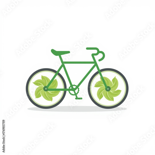 Eco-friendly bicycle vector illustration with green frame and leaf-shaped wheels on white background