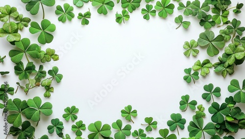 Eco-friendly design with green clovers for a St. PatrickA's Day greeting, framed space.