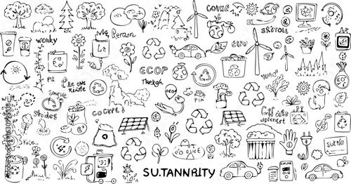 Eco-Friendly Doodles: Sustainability, Recycling, and Renewable Energy in Hand-Drawn Style