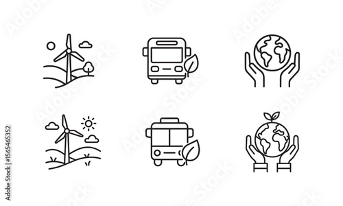 Eco-Friendly Icons Wind Turbines, Electric Bus, and Earth Conservation