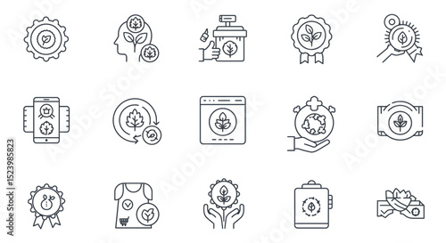 EcoFriendly Line Icons Sustainable Practices and Environmental Awareness Symbols