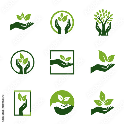 Eco-Friendly Logos Green Leaf and Hands Designs for Sustainability