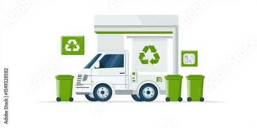 Eco-Friendly Recycling Truck with Green Bins for Waste Management