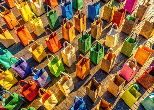 Eco-Friendly Shopping Bag Texture: Drone Aerial View of Sustainable Packaging
