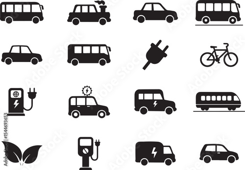 Eco-Friendly Transport Silhouette Icon Set Sustainable Mobility