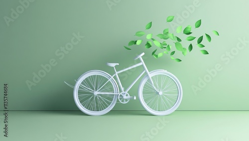 Eco-Friendly White Bicycle with Green Leaves, Sustainable Transportation Concept