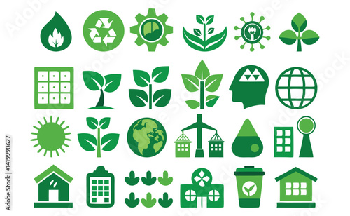 Ecology Flat Icons Set – Nature, Environment & Recycle Symbols – Vector Illustration