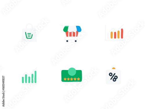 E-commerce growth strategy online shopping, sales analytics, customer reviews, and discount offers icons vector icon