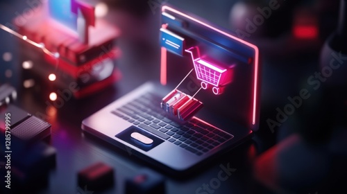 E-commerce innovation virtual shopping cart experience digital workspace 3d visualization modern technology engaging perspective