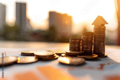 Economic Recession, banking, finance & investment concepts. Interest rate decline graph, stock market, economic crisis, increase interest, Financial interest rates, interest burden. compound interest.