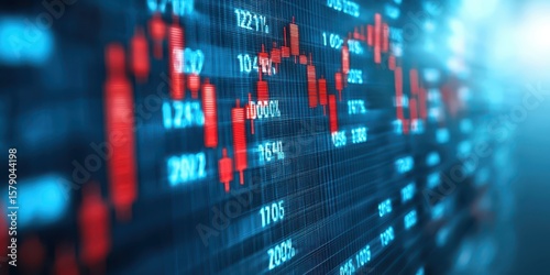 Economy balancing assets concept. Stock market data visualization with fluctuating graphs and numbers.