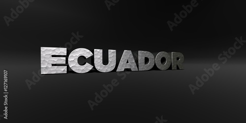 ECUADOR - hammered metal finish text on black studio - 3D rendered royalty free stock photo. This image can be used for an online website banner ad or a print postcard.