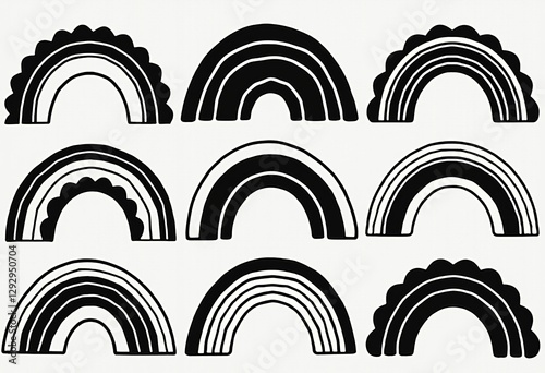Edgy Rainbow Clip Art Set: Bold Designs with Thick Black Outlines for Graphic Design, Stickers, and Creative Projects – Isolated on a Pure White Background.