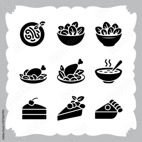 Edible Elegance Black Icon Design Celebrating 90 Words of Nutritional Artistry Fruitful Finale Vect
