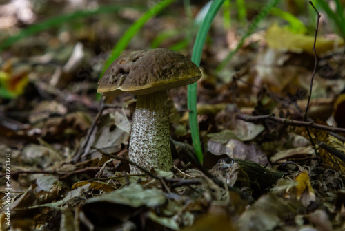 Edible mushroom Leccinum pseudoscabrum in deciduous forest. Known as Hazel Bolete. Wild mushroom growing in the leaves