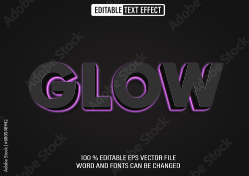 Editable 3d text style effect - Glowing Black Purple Light Template