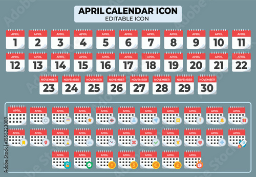 Editable April Calendar Icon Set: Monthly Planning and Event Tracking Tools Collection