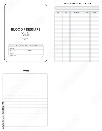 Editable Blood Pressure Tracker Planner Kdp Interior printable template Design.