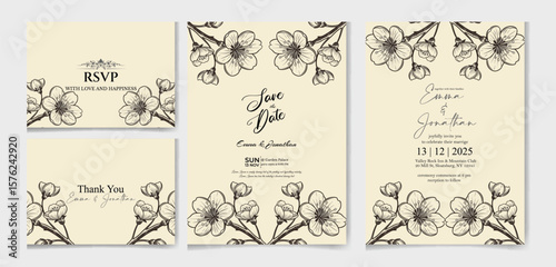 Editable Elegant Floral Wedding Invitation Set with RSVP Design