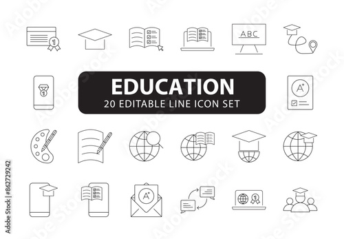 Editable outline Back to school icons collection. outline icons related to higher education. editable outline, back to school icons, back to school collection, outline icons, higher education icons,