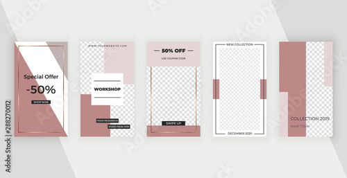 Editable stories templates for social media banners with pink and grey geometric shapes. Modern covers design for poster, greeting, wedding invitation, flyers, card.