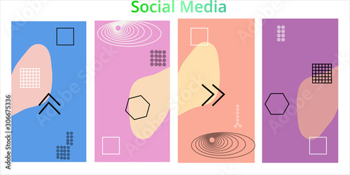 Editable story templates with empty place for text abstract creative backgrounds for social media. Bright colored with hand drawn scribbles promotional backgrounds for social media apps - vector eps10