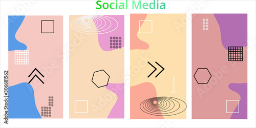 Editable story templates with empty place for text abstract creative backgrounds for social media. Bright colored with hand drawn scribbles promotional backgrounds for social media apps - vector eps10