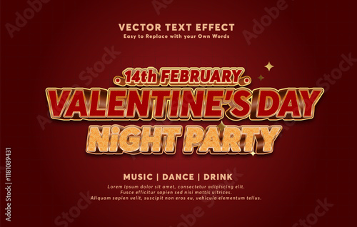 Editable text effects Happy Valentine day 3d cartoon template style premium vector. Valentines Night Party Flyer Poster Vector