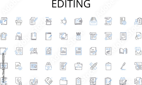Editing line icons collection. Employment, Opportunities, Positions, Listings, Jobs, Hiring, Applicant vector and linear illustration. Recruitment,Search,Resume outline signs set
