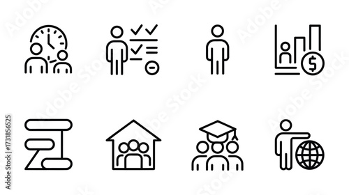 Education and Leadership Icons - Students, Growth, Learning, Success Outline Set
