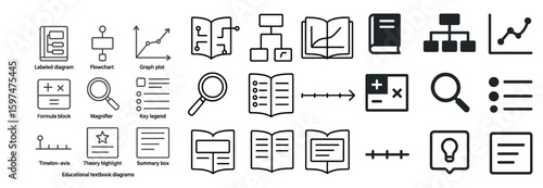 Education and learning outline icons set – linear, teaching, academic symbols