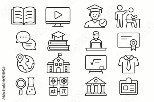 Education and School Icons Set – Learning, Graduation, Teaching, Books, Study Tools