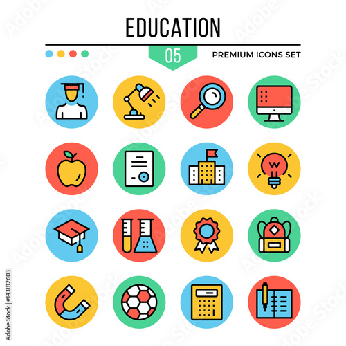 Education icons. Learning concepts. Modern thin line icons set. Premium quality. Outline symbols, graphic elements, flat line icons. Vector illustration