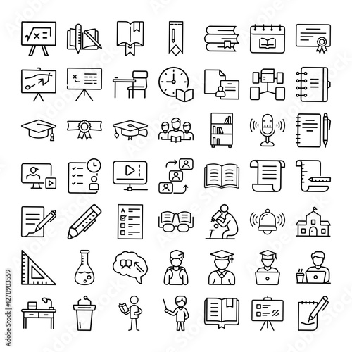 Education Icons Learning, Teaching, Books, Study, Classroom, Knowledge, Graduation, Research, School