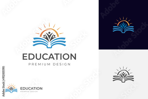 education logo design with book and student graphic idea for learning, reading, student progress and success in learning vector logo illustration symbol