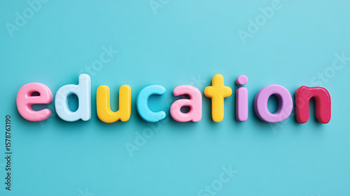 Education spelled with colorful letters on turquoise background