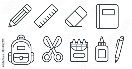 Education, stationery outline icon set. school, learning, writing tools collection