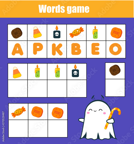 Educational game for children. Word puzzle kids activity. Halloween theme fun for toddlers