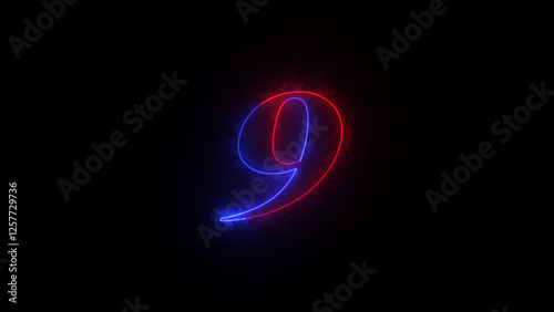 Educational mathematics concept with neon letter. Abstract neon countdown “9” number text background illustration. Neon digital number.