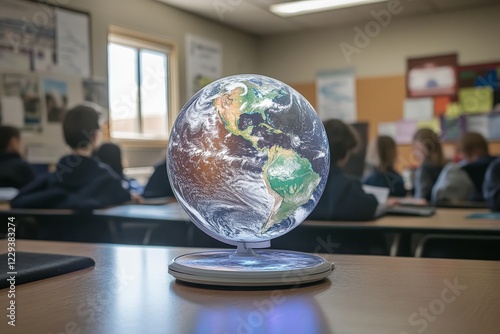 Educational session in a classroom with a digital globe showcasing interactive geography