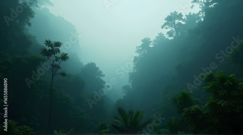 Eerie and Foggy Forest in a Deep Valley