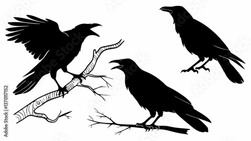Eerie Crow Silhouette Trio Set for Halloween Designs