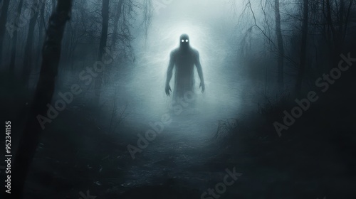 Eerie Encounter: Ghostly Figure with Hollow Eyes Screaming in Foggy Forest