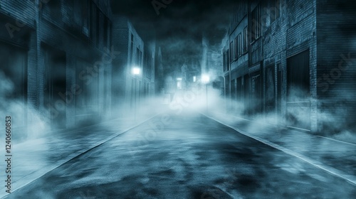 Eerie Foggy Night City Alleyway - A Mysterious Urban Landscape